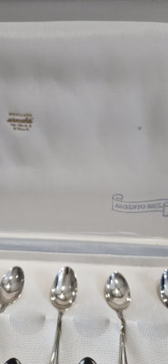 12 Espresso~ Mokka Löffelchen aus 800er Silber, Italien, ca. 1950-60, im original Kasten, Mod. Giorgio I