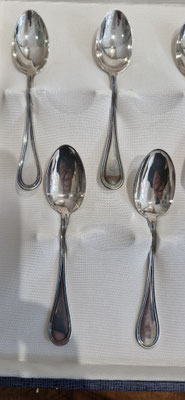 exclusiver 12er Satz Espresso~ Mokka Löffelchen aus 800er Silber 9,5 cm Länge, Italien vermutlich Hersteller Greggio, Mod, Giorgio I