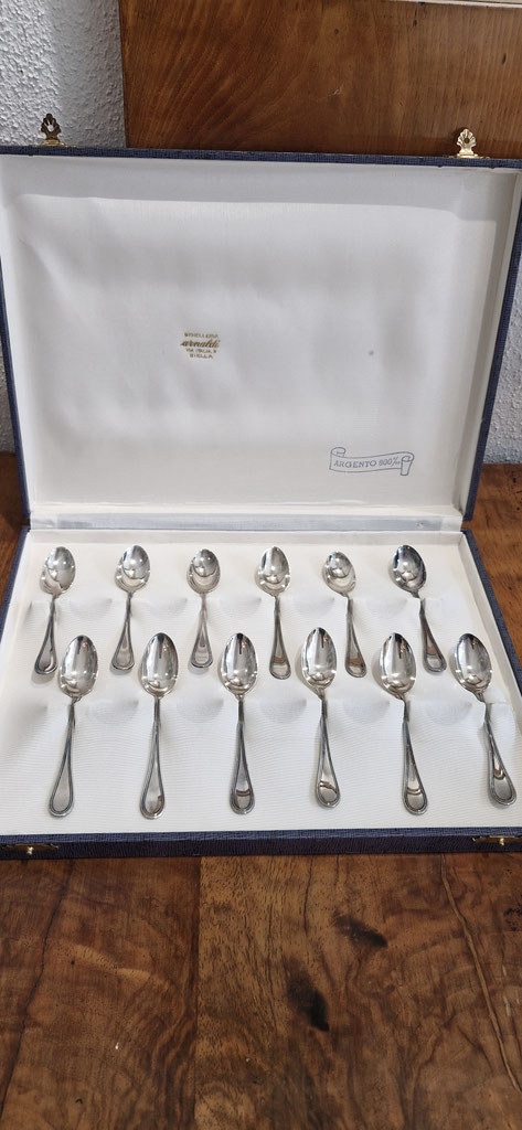 12 Espresso~ Mokka Löffelchen aus 800er Silber, Italien, ca. 1950-60, im original Kasten, Mod. Giorgio I